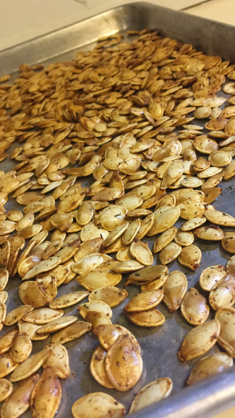 After my friends left, and all my little people went to bed, I was able to get my dress ready for zipper and hem, and I roasted the seeds from all those pumpkins, with butter, salt and ranch powder, to make a yummy, healthy snack.