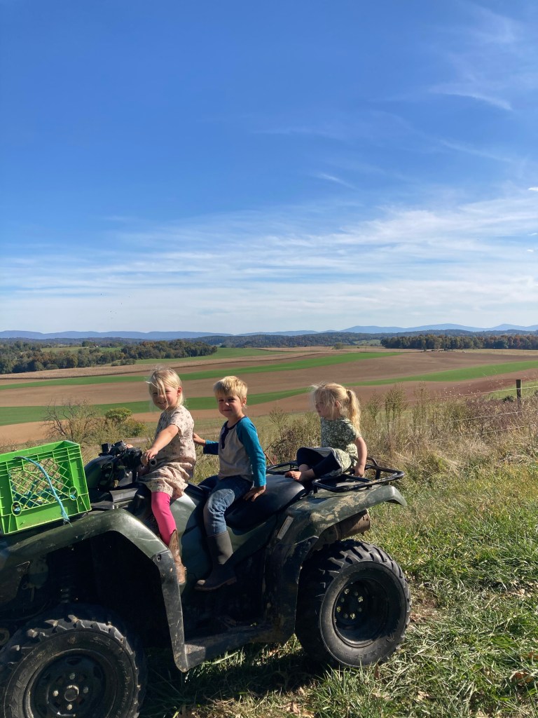 Oliver is all farm boy; not one bit afraid of getting dirty. I’m kept busy washing mud and grime off of his clothes and shoes. He loves nothing more than riding with Cory in the litter truck or on the tractor.