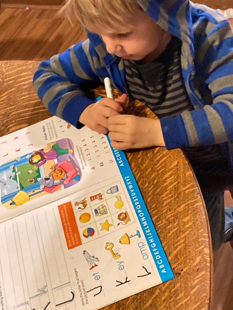 *The very day after I wrote down those intentions, he informed me that he has learned nothing in Kindergarten that he didn’t already know, and wants to do first grade now. I pulled out the first grade math and he whizzed through the first 5 lessons in a 30 minutes or so.