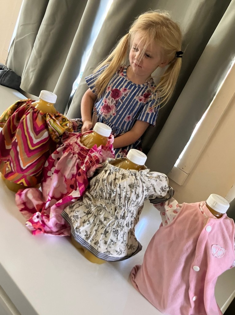 My kids have plenty of toys but they continue to play with non-toy items 😅 these “babies” are pineapple juice. Apparently they “feel more like a real baby.” 🤔