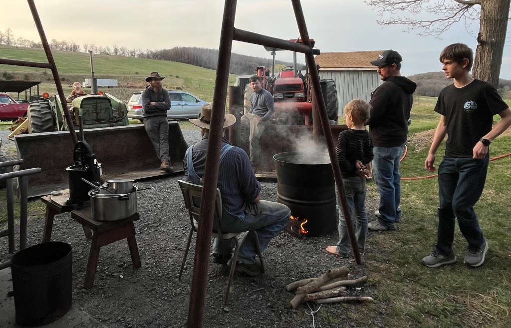 We got a good early start, we had a good crew of willing help, and would have finished up earlier than usual, but… this year was my first year being responsible for the ponhoss, we tried a new king of cornmeal, and I suspect I didn’t have the broth/cornmeal ratio quite right. We stirred it for HOURS.